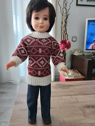 Muñeco Lucas de Famosa, de la primera época, de principios de los años 70.Un clásico para coleccionistas. Con cejas de pelito originales, cintura articulada y marcaje en la nuca Famosa Made in Spain. El muñeco ha sido reensamblado/arreglado internamente para asegurar su firmeza, manteniendo su estética exterior impecable. Brazos de vinilo blando típicos de los primeros modelos. Incluye su conjunto original de jersey de rombos y mocasines marrones marcados:" Famosa 33"