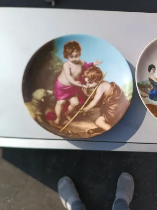 Conjunto de platos decorativos con escena de querubines. - Diseño clásico. - Ideal para coleccionistas.