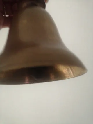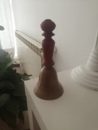 Campana de mano antigua de madera y metal