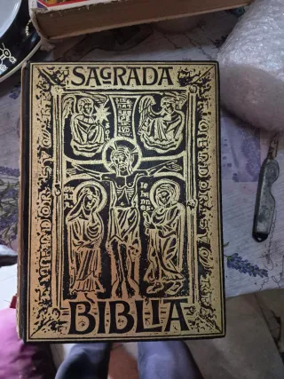 Se venden dos biblias, una de ellas de los años 50-60. Ideal para amantes de la restauración. La otra, ideal para niños. - Portada con diseño grabado. - Encuadernación en tela negra y dorada.