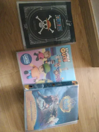 Lote de 3 álbumes de cromos coleccionables. - Álbum One Piece 25 Aniversario. - Álbum Stumble Guys La colección oficial. - Álbum Fantasy Riders Juego de Cartas Coleccionables.