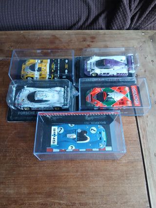 Conjunto de diez vehículos a escala 1/43. Coches de resistencia y 24 horas de Le Mans. - Renault Alpine A442B. - Toyota GT-One. - Toyota TS050 Hybrid. - Lamborghini Countach. - Jaguar XJR12 - Mazda 787B - Porsche 956 - Matra MS670B - Porsche GT1 - Toyota 7 El blister del Porsche GT1 esta algo roto, pero el producto esta perfecto, este estaria a 15 euros. Los restantes a 20 euros la unidad.