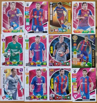 Conjunto de tarjetas de jugadores del FC Barcelona. Ideal para coleccionistas. Adjunto dos fotos. 40 CARDS, ninguna repetida. - Tarjetas de Xavi, Vitor Roque, Sergi Roberto, Maxwell, Ter Stegen, Messi, Bravo, Pjanic, Rakitic, Montoya, Gündogan. - Incluye detalles de estadísticas y atributos de cada jugador. Todo el lote por 25€