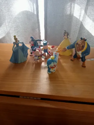 Lote de figuras de personajes icónicos. Incluye figuras de Los Tres Cerditos y el lobo, La Cenicienta ,Doraemon y La Bella y la Bestia - Figuras de personajes de cuentos y animación. - Ideal para coleccionistas o para jugar. Todas sin estrenar y con su etiqueta. Maravillosas