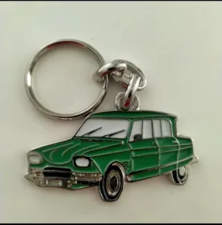 Llavero con un diseño detallado de un coche clásico estilo Mini. - Material: Metal plateado. - Diseño: Coche clásico. - Accesorio para llaves.