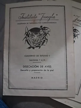 Cuaderno de estudio I del Instituto La Jungla de Madrid, dedicado a la Disección de Aves. - Lecciones 1 a 6. - Enseñanza de taxidermia por correspondencia. - Incluye Desuello y preparación de la piel.