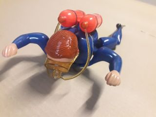 Figura de buzo articulado estilo Frog Man de los años 90. Ideal para coleccionistas. - Muñeco de buceo. - Dos bombonas naranjas. - Traje azul.