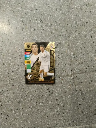 Tarjeta de colección de Cristiano Ronaldo, modelo CR7 Memory de Panini para LaLiga. - Diseño con imágenes de Cristiano Ronaldo. - Incluye estadísticas del jugador. - Edición especial con detalles dorados.