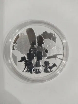 Onza de plata con diseño de la Familia Simpson. - Diseño de la familia Simpson con sus mascotas. - Acabado en plata.