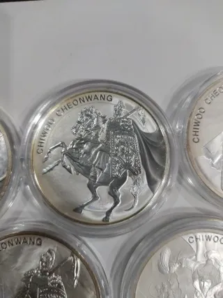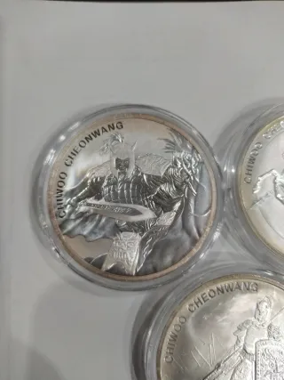 Onza de plata con diseño de Chiwoo Cheonwang. - Acabado brillante. - Borde con inscripciones. -Coleccion 800€ -Individuales 140 cada una