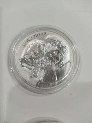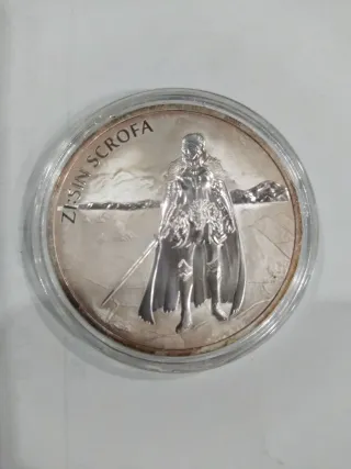 Colección de onza de plata con diseño ZISIN SCROFA. - Acabado en plata. - Diseño detallado de figura con capa y espada. - Inscripción ZISIN SCROFA en el borde. -Pack 5 monedas 680 -Individuales 140 cada moneda