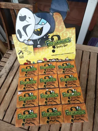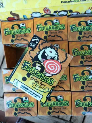 Colección de cajas de figuras coleccionables Freakables Series One. - Diseño temático de monstruos y personajes. - Cada caja contiene una figura sorpresa. - Ideal para coleccionistas y fans de lo peculiar. Són 12 cajas con una figura diferente,personajes divertidos con la opción de taparles la cara con una máscara.Estan todas en perfecto estado excepto una que tiene el enganche de la máscara rota(ver última foto) Edición de 2004,la caja de almacenamiento está en muy buen estado.Las cajitas pequeñas algunas un poco fatigadas.