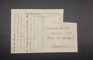 Vendo tarjeta postal publicitaria original Cerveza Moritz Negra (años 30) con la ilustración clásica del camello pescando la botella. Enviada el 21 junio 1938 por Ramón Terres, soldado de la 59ª Brigada Mixta (42ª División, Batallón 3º, Infantería de Marina), justo un mes antes de cruzar el Ebro en la Batalla del Ebro. Mensaje manuscrito. Censura militar republicana (marca azul Barcelona 1938). Sin sellos: anotación "es prega ho pagui el rebedor per falta de segells al front", “pague el receptor por falta de sellos en el frente” viene directo del contexto del frente. Estado muy bueno. Pieza única. RARA y magnífica.