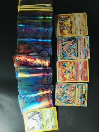 Se vende lote de cartas Pokémon. - Incluye varias cartas de Charizard y MCharizard. - Algunas cartas tienen arte completo y son brillantes. - Se aprecian cartas con valores de 310 y 3400 de daño. Y varias cartas del 1995 de esa época encontrarás muy pocas ya.✅