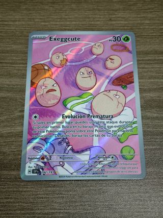 Carta Pokémon de Exeggcute, edición básica. - Ilustración de Yuriko Akase. - Número de carta: 192/191. - Ataque especial: Evolución Prematura. Se entrega con Sleeve y Toploader