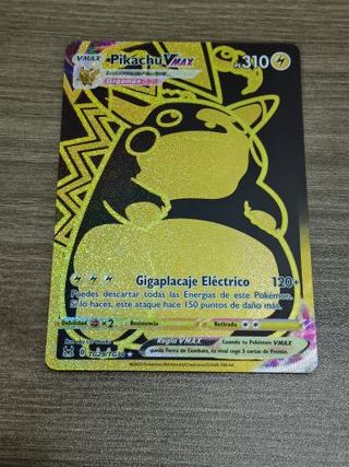 Carta Pokémon de Pikachu VMAX Gigamax. - Ataque: Gigaplacaje Eléctrico. - PS: 310. - Debilidad: x2. - Resistencia: Ninguna. - Retirada: 2 energías. - Regla VMAX: Cuando tu Pokémon VMAX queda Fuera de Combate, tu rival coge 3 cartas de Premio. - Ilustración de Yusaky CGWorks. - Código: TG29/TG30. Se entrega con sleeve y toploader.