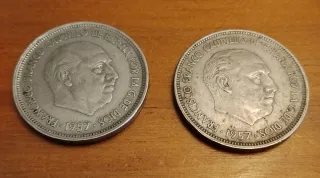 Se venden dos monedas de 50 pesetas del año 1957 época Francisco Franco. Una estrella 58 y la otra 59.