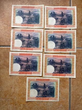 Conjunto de ocho billetes antiguos del Banco de España - Emisión: 1935. - Banco de España. - Certificado de Plata de Curso Legal. - Incluye los siguientes números de serie: D2.962375, C8.503.973, C5.030.569, D1.205.517, C2.539.058, C5-681.170, C4.945,123, D2-035-277.