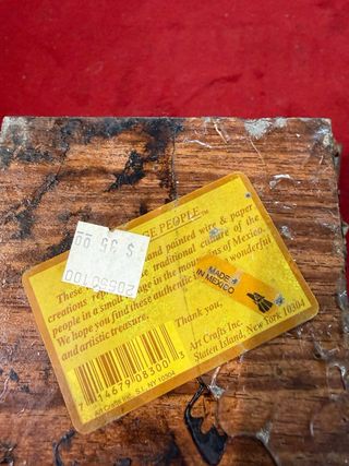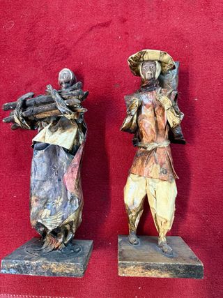 Conjunto de dos figuras artesanales de papel, inspiradas en México. Representan a personas con cargas. - Hechas a mano con papel. - Bases de madera. - Detalle de vestimenta y accesorios.