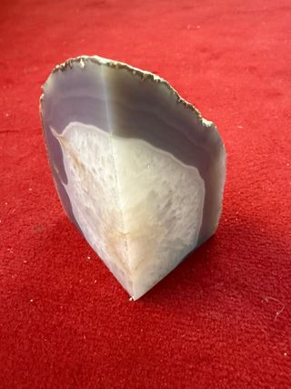 Elegante soporte para libros tallado en ágata natural. Su diseño único añade un toque de estilo a cualquier estantería. - Material: Ágata - Color: Blanco y gris
