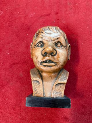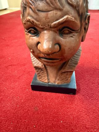 Figura decorativa de una cabeza con base. - Material: Cerámica o resina. - Diseño detallado. - Base negra.