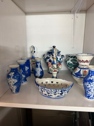 Conjunto de cerámica decorativa azul y blanco
