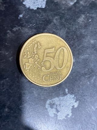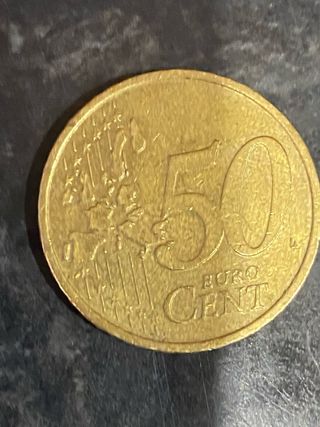 Moneda de 50 céntimos de Euro, con fecha de 2002. - Diseño de la cara común europea. - Borde con estrías.escucho oferta