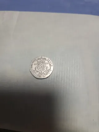 Moneda de 20 peniques del Reino Unido, acuñada en el año 2004. - Diseño con la rosa Tudor y la corona. - Borde con la inscripción TWENTY PENCE.