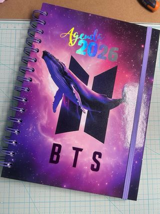 Agenda del año 2026 con diseño de BTS y temática espacial. - Portada con ballena y logo de BTS. - Planner mensual - Planner semanal - Incluye K-Diario.