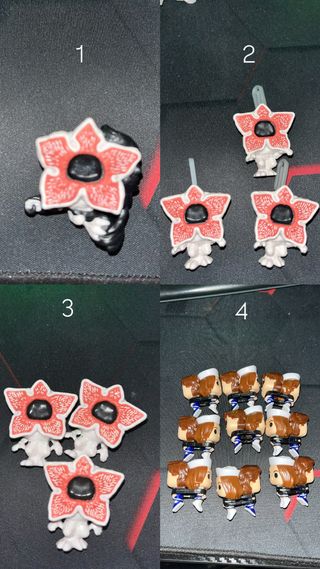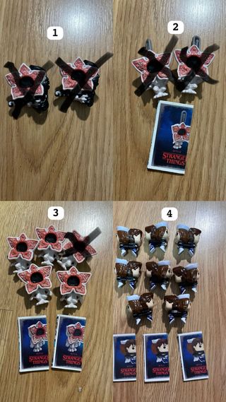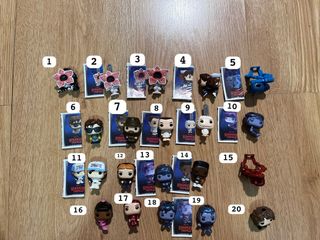 Colección de figuras Funko Pop de Stranger Things, provenientes de Kinder Joy. Cada figura representa un personaje icónico de la serie. - Figuras coleccionables. - Personajes de Stranger Things. - Edición Kinder Joy. - Se venden a cantidad necesaria al comprador. - Pregunta sin compromiso