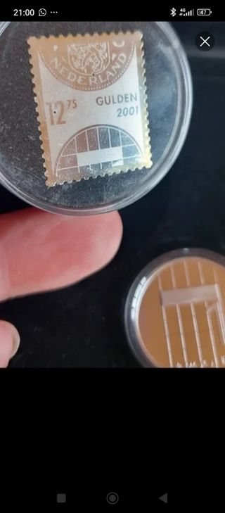 Estuche conmemorativo que incluye una moneda y un sello de plata. - Sello: Rutger Fuchs, Plata .999, 0.53 gramos, 21 x 25 milímetros. - Moneda: Bruno Ninaber van Ey, Plata .925, 7.1 gramos, 25 milímetros, Prooflike.