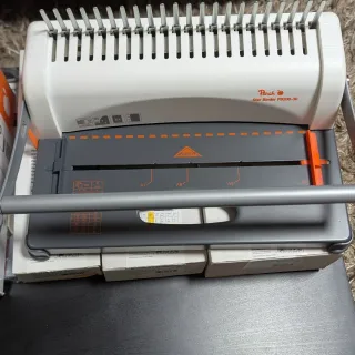 Encuadernadora Peach Starbinder Pro PB200-30. - Capacidad de encuadernación de 350 hojas. - Capacidad de perforación de 12 hojas. - Perforadora de 4 agujeros. - Admite documentos hasta tamaño A4. - Característica de centrado fácil para un punzado perfecto. -Incluye 300 canutillos de plástico para encuadernar de diferentes tamaños. -Incluye portadas transparentes para encuadernar.