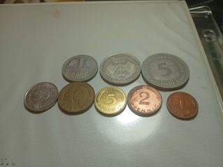 Conjunto de monedas de la República Federal de Alemania. - Incluye monedas de 1, 2, 5, 10, y 50 Pfennig. - También incluye una moneda de 1 Deutsche Mark. - Algunas monedas son de 1990.