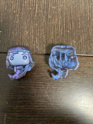 Figura coleccionable de Robin con un acabado iridiscente. - Diseño inspirado en el personaje. - Pintura con tonos morados y azules. - Estilo Funko Pop!.