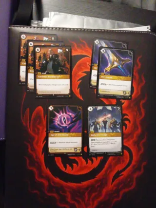 Pack de cartas del juego Riftbound Spiritforged. - Incluye cartas de diferentes tipos y costes. - Algunas cartas son de rareza Elite. - Cartas con arte detallado y temáticas variadas.