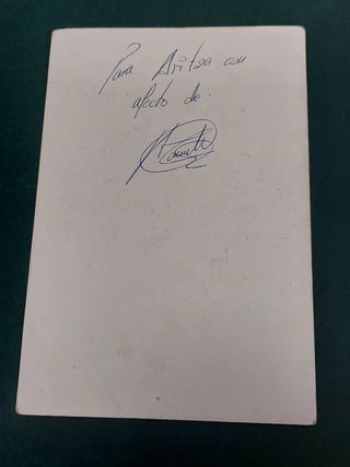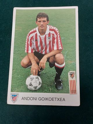 Tarjeta original de Andoni Goikoetxea, exjugador del Athletic Club de Bilbao, firmada a mano. Detalles: Jugador: Andoni Goikoetxea Club: Athletic Club Bilbao Artículo: Tarjeta / cromo Autógrafo: Sí (original, a bolígrafo) Estado: Bueno (ligeras marcas normales por el paso del tiempo, ver fotos) Ideal para coleccionistas, aficionados del Athletic o memorabilia futbolera Entrega en mano o envío por Wallapop.