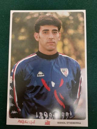 Por ostal oficial del Athletic Club Bilbao correspondiente a Imanol Etxeberria, edición Centenario (1898–1998) Postal original del Athletic Club Bilbao Edición especial del Centenario 1898–1998 Nombre “Imanol Etxeberria” Equipación conmemorativa del centenario (Kappa) Como nueva