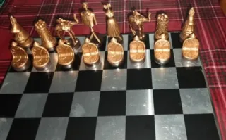 Conjunto de ajedrez inspirado en la obra de Salvador Dalí, conmemorativo del año 2004. Las piezas son de metal con un acabado plateado y dorado. - Diseño surrealista único. - Tablero de ajedrez incluido. - Piezas detalladas.