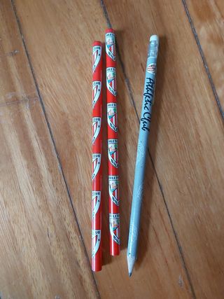 Lote de lápices conmemorativos del Athletic Club de Bilbao. - Diseño rojo con escudo y logo del club. - Lápiz adicional con diseño azul y nombre del club. - Ideales para coleccionistas y aficionados. Sin uso,guardados en caja. Vendo juntos.