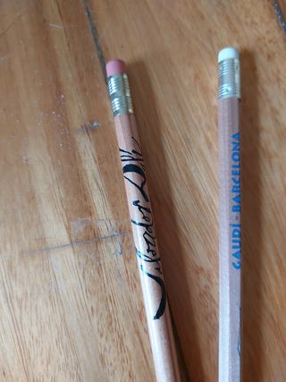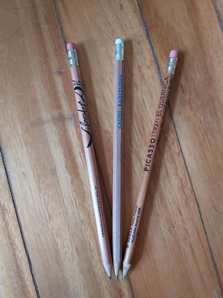 Conjunto de tres lápices de colección dedicados a pintores famosos. - Lápiz conmemorativo de Gaudí en Barcelona. - Lápiz dedicado a Picasso y su obra El Guernica (1937), Museo Nacional Reina Sofía. - Lápiz conmemorativo de la Fundació Gala Salvador Dalí (1996). Vendo juntos. Sin uso,guardados en caja.