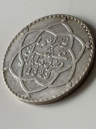 Moneda plata Marruecos 10 Dirham año 1911 (1329)