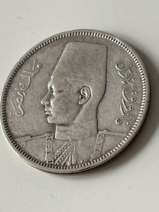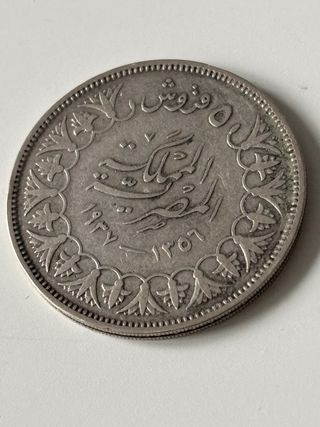 Moneda plata 5 piastras Egipto año 1937