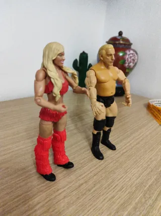 Figuras de acción de luchadores de la WWE. Rick Flair, summer Kae. Están en buen estado . Mattel. Perfectas para coleccionistas y aficionados. - Figura femenina con atuendo rojo. - Figura masculina con atuendo negro y botas.