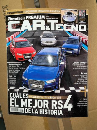 Revista Car & Tecno de marzo de 2013. - Artículo principal: ¿Cuál es el mejor RS de la historia? Del Audi RS2 de 1994 al RS4 de 2012. B7 B8 - Reportaje sobre el Hennessey Venom GT. - Prueba de placer: Porsche 911 Cabrio vs. Morgan Plus 8. - Sección Así van con Bentley Continental GT Speed, Ariel Atom 3.5, Seat Ibiza Cupra y Volvo S60 Polestar. - Artículo sobre F1 2013.