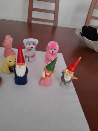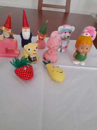 Conjunto de figuras infantiles variadas. De los años 80 algunos tienen algún fallo por el uso y los años - Incluye figuras de gnomos, animales y personajes. - Diseños coloridos y divertidos.