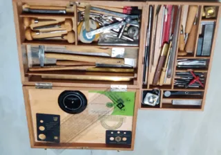 Campana ceremonial de origen africano, con un diseño distintivo y detalles intrincados. - Elaborada con materiales de aspecto rústico. - Presenta un rostro estilizado en la parte superior. - Base con forma de campana. - Altura aproximada: 68 cm (medida con cinta métrica visible).