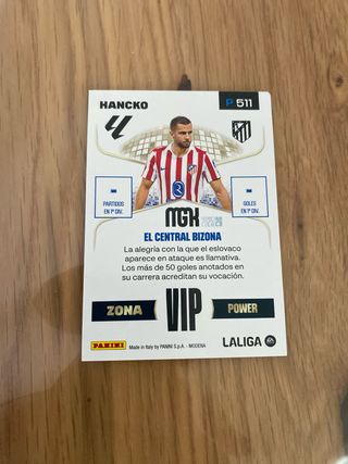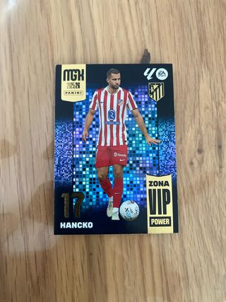 Carta coleccionable de fútbol Panini MGK 511 de la temporada 2025/26. - Diseño con el jugador Hancko. - Incluye número 17. - Zona VIP Power.