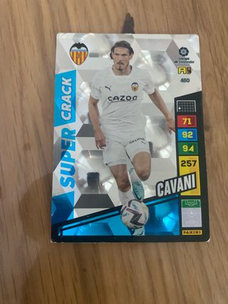 Carta de futbolista Edinson Cavani, edición Super Crack de LaLiga Santander. - Incluye dorsal 7. - Número de carta 460. - Puntos: 71, 92, 94, 257. - Marca: Panini.