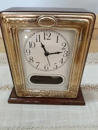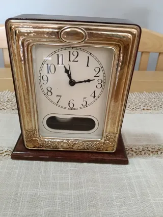 Elegante reloj de mesa con un frontal de plata. - Diseño clásico y decorativo. - Base de madera oscura.