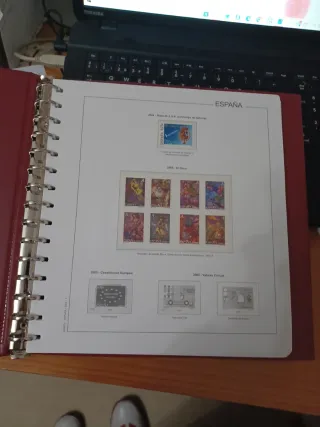 Hojas de sellos de España de los años 2002 y 2003. Con sellos totalmente nuevos y filoestuches trasparentes, y álbum de 15 anillas nuevo en verde ó en burdeos . Años completos. Recoger en Madrid barrio Concepción, se envía por Wallapop . También sueltos. - Incluye sellos con motivos de Presidencia Española de la Unión Europea. - También contiene sellos de Flores y Árboles. - Sellos conmemorativos de ESPAÑA 2002 y ESPAÑA 2003.